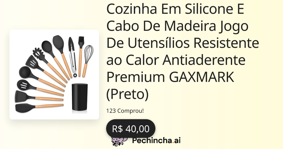 Kit 12 Utensílios De Cozinha Em Silicone E Cabo De Madeira Jogo De Utensílios Resistente ao Calor Antiaderente Premium GAXMARK (Preto)