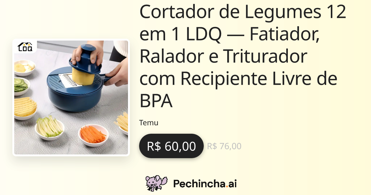 Cortador de Legumes 12 em 1 LDQ — Fatiador, Ralador e Triturador com Recipiente Livre de BPA